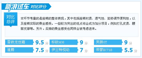 - 雪铁龙世嘉 7 分帝豪EC718 6 分伊兰特悦动 5 分
