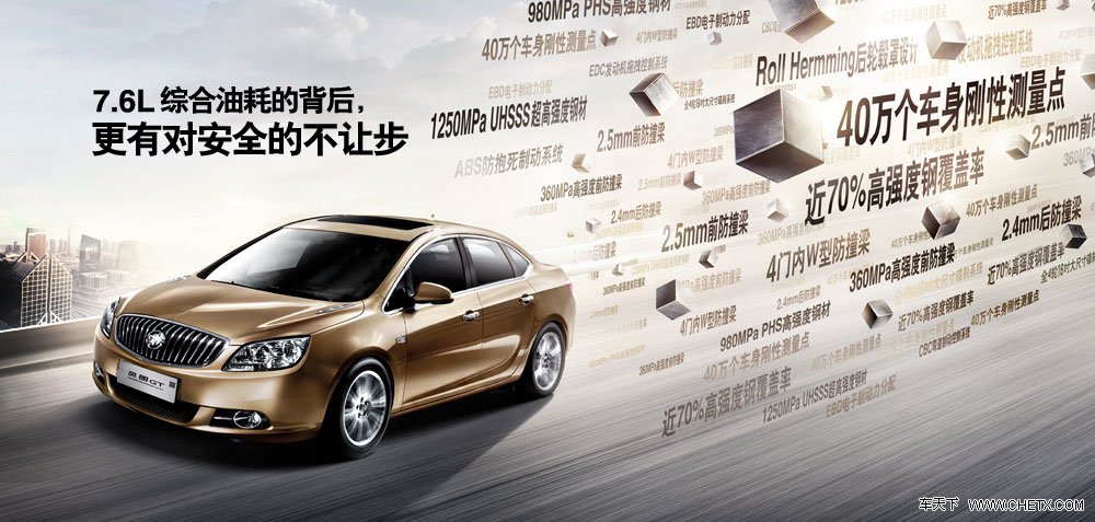 【1250MPa PHS高强度钢材】英朗GT的车身结构采用PHS高强度钢材,屈服强度高达1250MPa,是一般高强度钢的3-4倍,具备质量更轻、强度更高的优点。高规格材质用在车身安全设计的关键部位,极大提升了碰撞时对驾乘者的保护,正所谓好钢用在刀刃上!