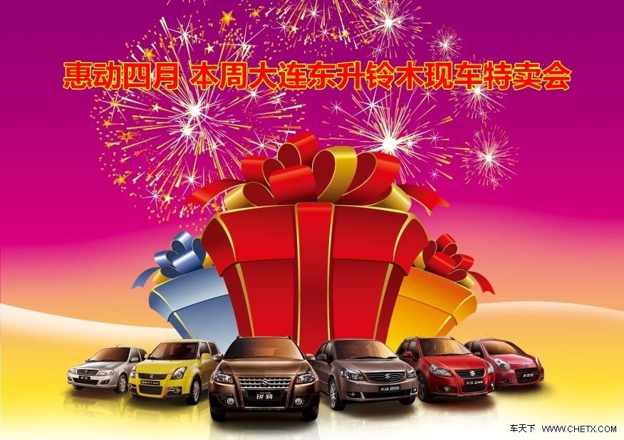 惠动四月,据悉,本周六大连东升铃木店特举行“东升铃木现车特卖会”,让您早上走着来,晚上开车回!特卖会期间,天语部分车型最高优惠2万元,尚悦导航版优惠1万元,锐骑全系优惠8000元,经典款雨燕影音版优惠4000元,火爆热销,数量有限,售完即止,更有一站式极速贷款模式,现车特卖万元钜惠,本周购车就来东升铃木店!