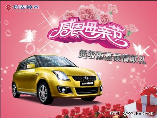 感恩母亲节,愿天下所有妈妈们美丽健康,“时尚红粉佳人”超级雨燕将为你购得青春,购得关爱,伴您度过愉快的节日,广大女性朋友们长安铃木经销商4S店竭诚欢迎您的光临。