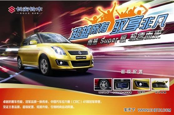 超级雨燕拥有着3年十万公里的超长质保,令同级车无以比拟,覆盖全国的24小时紧急救援系统,以及 “处处为您着想”的“爱车管家”服务,让用户体验全面的用车安全呵护。优秀的产品品质加上高效的售后服务,相信重装出击的超级雨燕将为汽车市场带来新的活力,引领两厢运动型小车的消费潮流。