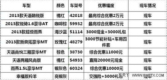 没车的时候心痒想买车,买车几年后,随着维修保养费用的逐年递增,换车的想法是否又在心底任意滋长了?惊喜六月,天语冰点风暴再袭滨城,粽情一夏,72小时满意购车,大连东升铃木店给您购车好选择,购天语最高综合优惠2.18万,锐骑综合优惠破2万,。天语尚悦豪华款综合优惠1.1万,万元钜惠,满意购车,店内端午节还有更多优惠活动,谁说频繁换车一定要巨额资金?换车真的那么难吗?据统计,美国人平均每人一生中要买3部新车,平均换车的时间是3.5年。而现在,只需5万元,就可以过一把“想换就换”的车生活,轻轻松松将座驾升级。