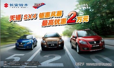 “热情”的夏天已迫不及待的来临,在烈日炎炎的季节购进自己心仪已久的爱车,躲避高温的炙烤,享受飞驰的快乐和车内的阴凉,相信是许多近期有意购车消费者的想法。近日,长安铃木为答谢广大用户对长安铃木产品的支持与厚爱,在二十周年之际,特携旗下经销商推出“天语 SX4 钜惠风暴”超值优惠活动,最高优惠2万元。