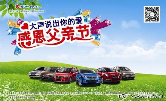 有爱大声说,父爱莫无言,大连东升铃木将爱心寄语写在爱心墙上,让您把对父亲深沉的爱倾情诉说,父亲节期间到店写下您的片片真情,参与店内“有爱大声说”父亲节亲子活动,就会获赠由店内提供的精美礼品一份,感恩源动力,天语空前优惠,本周店内天语全系优惠来袭,天语SX4全系综合优惠2.18万,2013款天语酷锐强势登场,已登陆大连东升铃木店,优惠预定中,最高综合优惠破2万,务实之选,居家家轿典范全新天语尚悦最高综合优惠1万元,尚悦导航版优惠1万元现金,更有天语钜惠风暴,购天语最低首付只需5万元,天语全系车型参与!“破万”诚意,优惠续写,前两名成功订车更有蓝牙耳机送出,感恩父亲节,大连东升铃木全系优惠同行!
