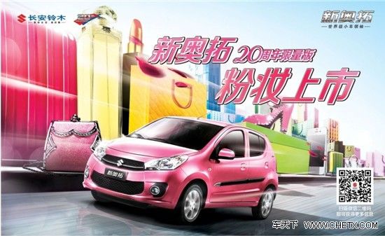 回馈七月,尝新、尝鲜、尝百味,本周大连东升铃木店特举行“限时特卖 长安铃木全系超级回馈”活动,本次活动,新奥拓20周年限量版粉妆上市在外观上增加了防擦条、后扰流板,配置增加倒车雷达,变更经典款铝合金轮毂,还新增了新奥拓20周年的徽标。在内饰上,增加了迎宾踏板、粉红色装饰件套等,另外座椅面料的色彩也有所改变。新车惊喜,全系聚力,天语SX4最高综合优惠2.18万,经典款雨燕万元钜惠,数量有限,售完即止,天语两厢优贷计划,零利率零产值!轻松购天语,0利购无忧!店内2013款天语酷锐款,活动期间预定更享劲爆价格!全系跨界理念,红色七月,冰季购车!
