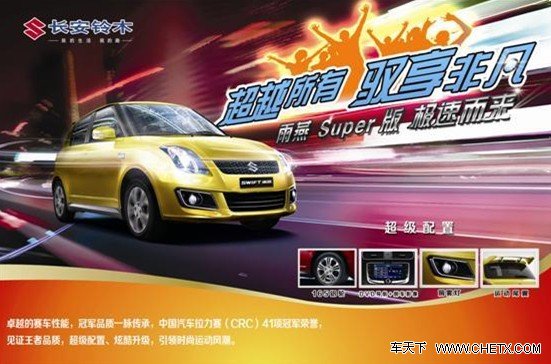 超级雨燕全面升级   配置更丰富、造型更运动雨燕1.3MT全新升级,原厂铝合金轮毂,运动尾翼,四门电动升窗,店内更在配置增加无钥匙进入、智能升窗、车主身份识别技术、配备高级滚码防盗芯片、现在购车更可赠送三年盗抢险,更可赠送选装的精美内饰大礼包(整车贴膜、倒车雷达、环保地胶、精美座套)给您购车节省成本,增配不增价。