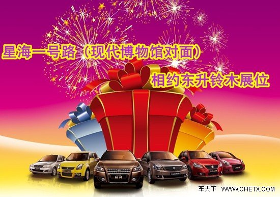 东升铃木“贷”给您不一样的优惠,特推”4M立体信贷方案“,免上牌费、免手续费、免购置税、免担保人,极速审批,灵活贷款让您轻松购车,用车无压力,还为您创造一个更舒适,更温馨的购车环境,展位自由畅爽,不限量供应。展蓬内有专属休息、洽谈区全新大空间空调展蓬,棚内清凉惬意,给您一个舒适的购车环境,店内更有丰富多彩的文艺节目,降价更降温。官方唯一指定展位一号路东升铃木期待您的莅临!销售热线:0411-626555222。