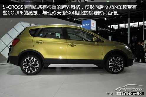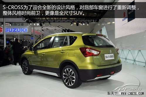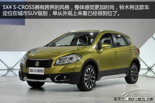 在外观上,S-CROSS通过诸多完美细节,实现铃木跨界车的又一次飞跃:柳叶形车前大灯,充满时尚感,如同东方俪人柔媚笑眼,个性十足;LED光源设置,为外形点睛;灵动的腰线,修饰出运动感十足的车身;开阔的全景天窗、加宽的扭矩、巧设的护板……越野元素的巧妙融入,使得铃木S-CROSS呈现出优质城市SUV的理想外形。新车整体尺寸略小于日产逍客,但大于别克昂科拉及福特翼搏。无论是在商务场合还是举家出游,无论在城市中驰骋还是在郊野畅游,S-CROSS都给人一种与生俱来的亲和感,让看到他的人都有一种跃跃欲试的冲动。