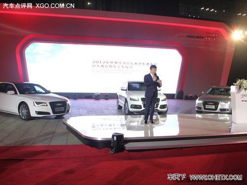 2012年9月7日晚,2012年世界经济论坛新领军者年会官方贵宾用车交车仪式在天津梅江会展中心举行。此次奥迪将提供旗下Q5 Hybrid quattro、A6L及旗舰车型A8L作为贵宾专用车。