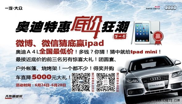 奥迪A4L全国最低,多钱,你猜?猜中底价就赢IPAD MINI!