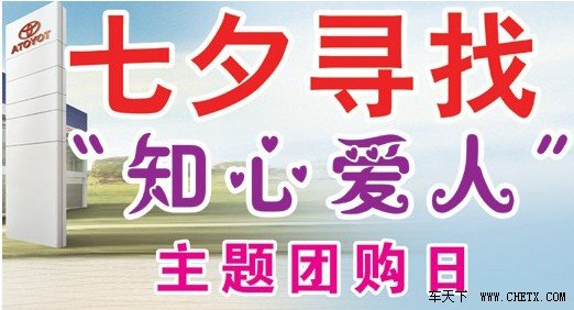 活动时间:2013年8月10日-13日 活动地点:博丰长久丰田店展厅; 活动对象:我店新、老客户;意向购车客户 活动主题:七夕寻找“知心爱人”主题团购日活动 活动方式:现场展示、专业介绍、精品推荐等; 活动负责:博丰长久市场部; 咨询电话:69450815,也可直接到前台咨询。 活动安排: 一、活动主题:七夕寻找“知心爱人”主题团购日活动 二、8月10日-12日购买锐志、花冠、卡罗拉的客户,赠送价值800元的礼品; 三、8月10日-12日购买其他车型的客户,赠送精美礼品一份; 四、8月13日购车的夫妻及情侣(凭结婚证),可获赠价值2000元的七夕大礼包; 五、8月13日购买锐志的夫妻及情侣(凭结婚证),可参与价值3000元精美对戒抽奖活动; 六、老客户介绍新客户,更有额外介绍礼; 七、活动期间订购新RAV4的客户,以交意向金为准,并达成实际成交,可额外赠送价值2000元的礼品;(具体详情请咨询您的专属销售顾问) 八、活动期间,部分精品六折优惠。 注意事项: 1. 本次活动持续4天,以购车开票日期为准; 2. 本次活动可享受的优惠不得重复。 3. 本次活动最终解释权归北京博丰长久丰田汽车销售服务有限公司所有