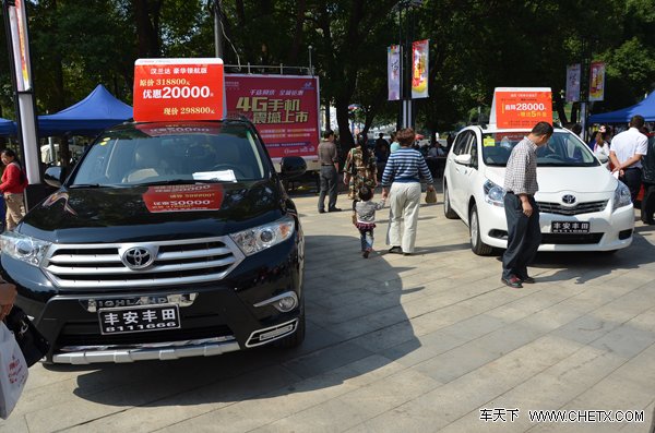 【车天下吉安讯】2013年10月4日上午10点,广汽丰田2014款星耀版凯美瑞(报价 参数 图片 论坛)、汉兰达(报价 参数 图片 论坛)及逸致(报价 参数 图片 论坛)三车于新世界广场隆重上市。活动吸引了众多看车客户及围观路人,全新YARISL致炫的现身更是吸引了不少目光。据悉,预定致炫每天享有25元客户基金,果真是早订早划算,上市会三车优惠放价,当天订车的朋友还有机会中洗衣机等大奖~活动现场人头攒动,4S店准备的节目精彩纷呈,还有不少互动的小游戏,当天现场购车、看车的朋友可算是有福了!