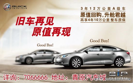 老车升级钜划算啦!3年12万公里A级车原值回购,即可置换升级全新君越。即日起,任意品牌A级车,购置价低于12万元,且车龄低于3年的老车主,只要通过4S店检测并置换别克君越,即可享受原车原值回购;尊享君越质保延长至4年10万公里。升级无忧、用车无忧。