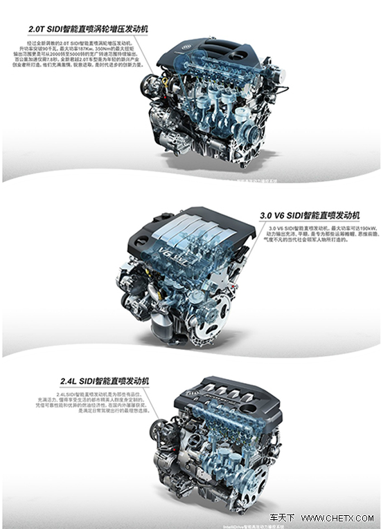 动力系统:全新君越还搭载了IntelliDrive智能高效动力操控系统,全系拥有“沃德全球十佳发动机”及其家族产品组成的全明星豪华动力阵容,为消费者提供了3.0L SIDI V6、2.0T SIDI、2.4L SIDI以及2.4L eAssist智能油电混合动力四款高效动力组合,配合包含H-arm高等级独立悬挂和CDC全时主动式稳定系统在内的智能底盘系统,提供了高品质个性化驾控体验。