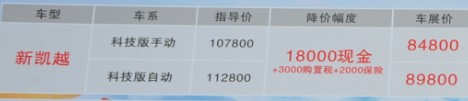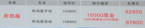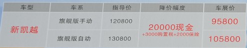 购新凯越享2万元钜惠+3000元购置税+2000元保险基金+3580元礼包,限3天,最低首付3万元,爱车贷回家。