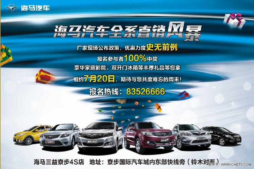 三益车行海马4S店 地址:寮步国际汽车城内(东部快线旁) 热线:83526666