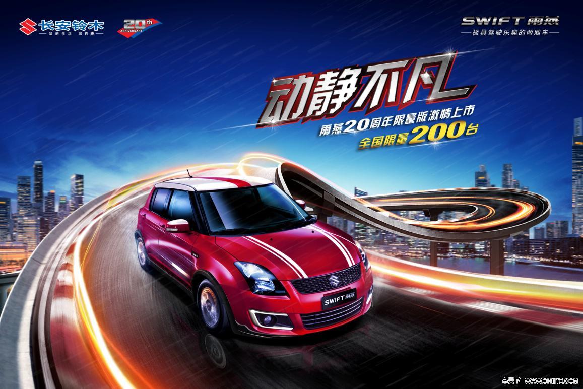 雨燕20周年限量版全国限量仅200台,靓丽出众的外观,舒适实用的内饰和功能配置,雨燕绝对是一款值得拥有的贴心小车。