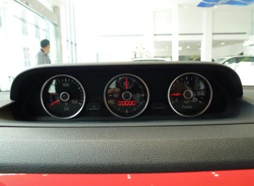 新款甲壳虫改变以往家庭系的味道,现在趋向于运动跑车的风格,新一代甲壳虫中控台上方,油温表、秒表和最右侧的涡轮增压值显示,有着准专业跑车的味道,对于爱改装车的车主朋友或男性车主绝对是一项爱不释手的配置。