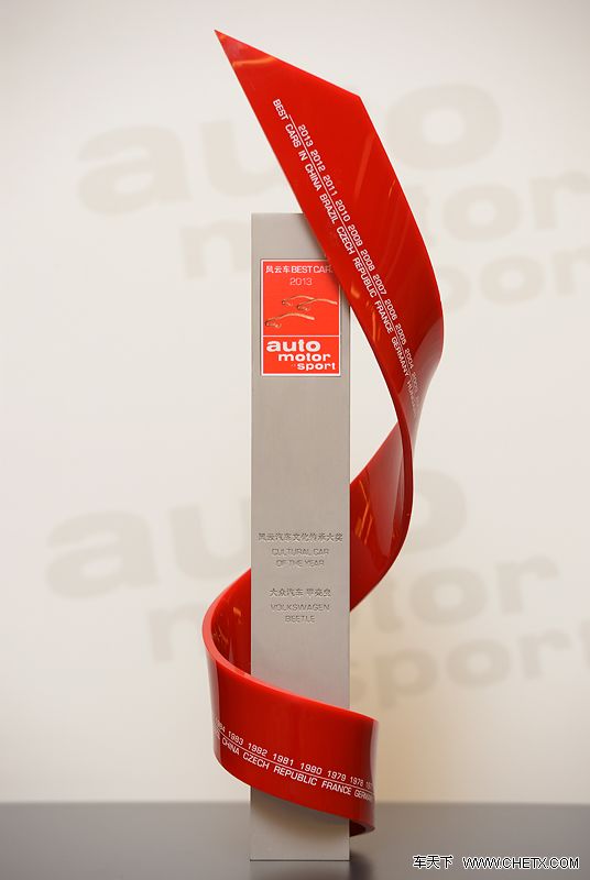 源自欧洲的“风云车”评选,在1976年由世界著名汽车杂志《auto motor und sport》发起,是一项由ams车评《汽车博览》杂志举办的大型消费者调研活动,目前已经覆盖全世界23个国家。享誉全球37年的“风云车”调研评选活动已经在中国成功举办了11届。自2002年ams中国团队将“风云车”活动引进中国以来,ams 始终坚持全球统一的调研标准,将所有调研数据汇总到德国总部进行统计分析。这项活动以其严谨的调研模式、客观的评价体系,成为中国市场上历史最长、范维最广、影响力最大的汽车全新一代甲壳虫获得2013风云汽车文化传承大奖奖杯消费调研活动之一。
