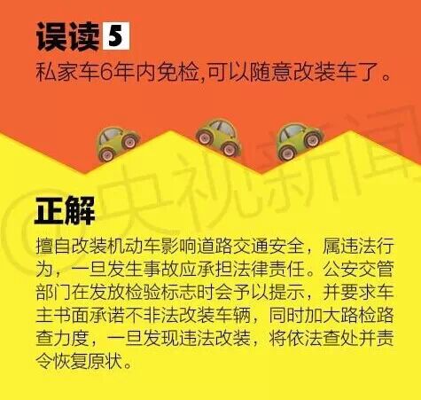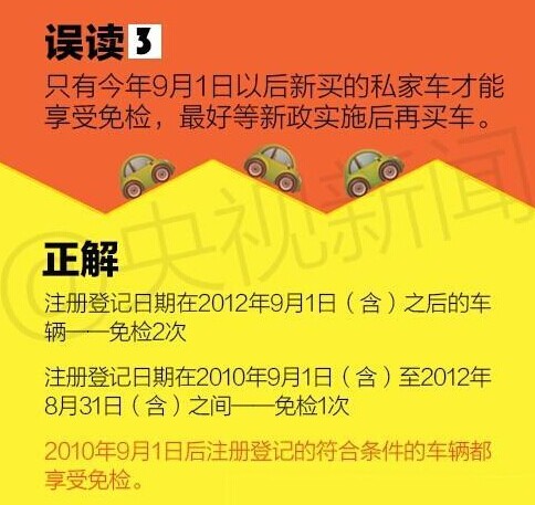 今年9月1日起将实行私家车“6年免检”政策,不少车主以为“6年内免检”相当于每隔6年才需要车检一次。真是这样?了解这五大误区,第一条起你可能就弄错了!
