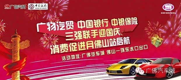 为积极贯彻省商务厅“稳增长、促消费、惠民生”的要求,2014年9月21日,广物汽贸广佛车城携手中国银行、中银保险强强联合,倾力打造广东省商务厅“惠民生”佛山站9.21钜惠团购日。届时华晨中华全系车型钜惠回赠新老顾客,携手中国银行、中银保险三强联手迎国庆,势要揭开佛山地区新一轮的促销热潮。
