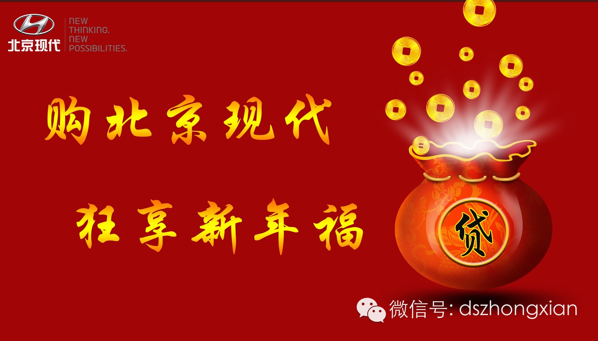 至于新年福袋嘛:咱们可准备了两款:3888元的惊喜福袋,以及北京现代新年福“贷”,您想领走哪款涅?动作迅速的话,或许能把两种福袋都领走哦!