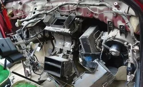 知道了异味的来源,就该想办法解决了,拆掉中控内饰后才能看到蒸发箱。