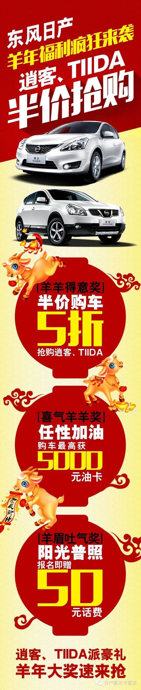新年就要玩大的,逍客、TIIDA联合易车网狂派年终奖,半价购车等羊年豪礼等你抢!!!