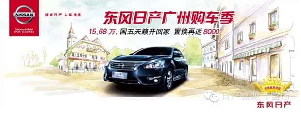 即日起至 5月1日,东风日产广州购车季火热来袭,15.68万,国五天籁开回家,旧车置换,再返8000,仰慕“暖男”天籁已久的你,准备好了么!