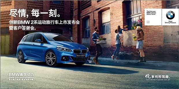 自广州琶洲车展展览以来至今已3个月之久,而创新BMW 2系运动旅行车也在这期间成为了广为流传的出行神器。这款车型面向那些内心年轻,倡导积极生活方式的人群。较高的座椅位置、宽敞灵活的车内空间和极佳的舒适性为消费者在BMW产品阵容中提供了全新选择。BMW标志性的动态表现和高效的燃油经济性亦可帮助用户从容应对城市交通环境。如今,你再也不需要单单从网络报纸广告媒体等看到传说中的出行神器了;广州昌宝带您尽情,每一刻。
