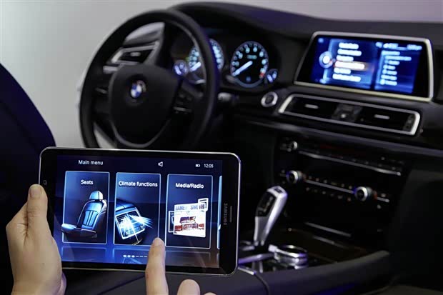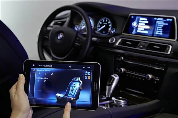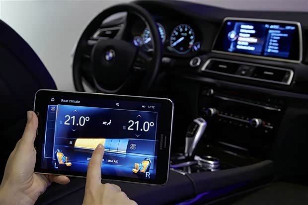 宝马应用程序在平板电脑上提供清晰的菜单总览,方便用户选择各项功能。通过wifi,用户无需离开座位,就能方便、舒适地调节座椅位置或自动空调等后座区舒适功能;应用程序可实现DVD播放器控制或收音机电台切换等操作。此外,平板电脑还可作为额外的屏幕显示控制功能,而且不会干扰前排座椅头枕上为后排乘客安装的显示器中的影音内容。