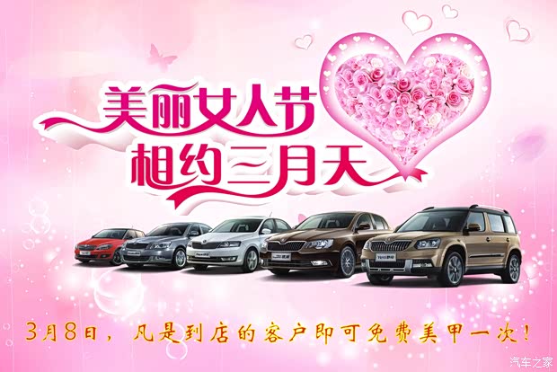 免费美甲、4重礼、万元礼品等你拿。爱美是女人的天性,美丽是女人的资本;激情是斯柯达车的标志,性价比超高是斯柯达的内涵。3月8日是她的节日,送一辆昕动才能配上最美的她呢?美丽女人节【昕动钜惠6000元】