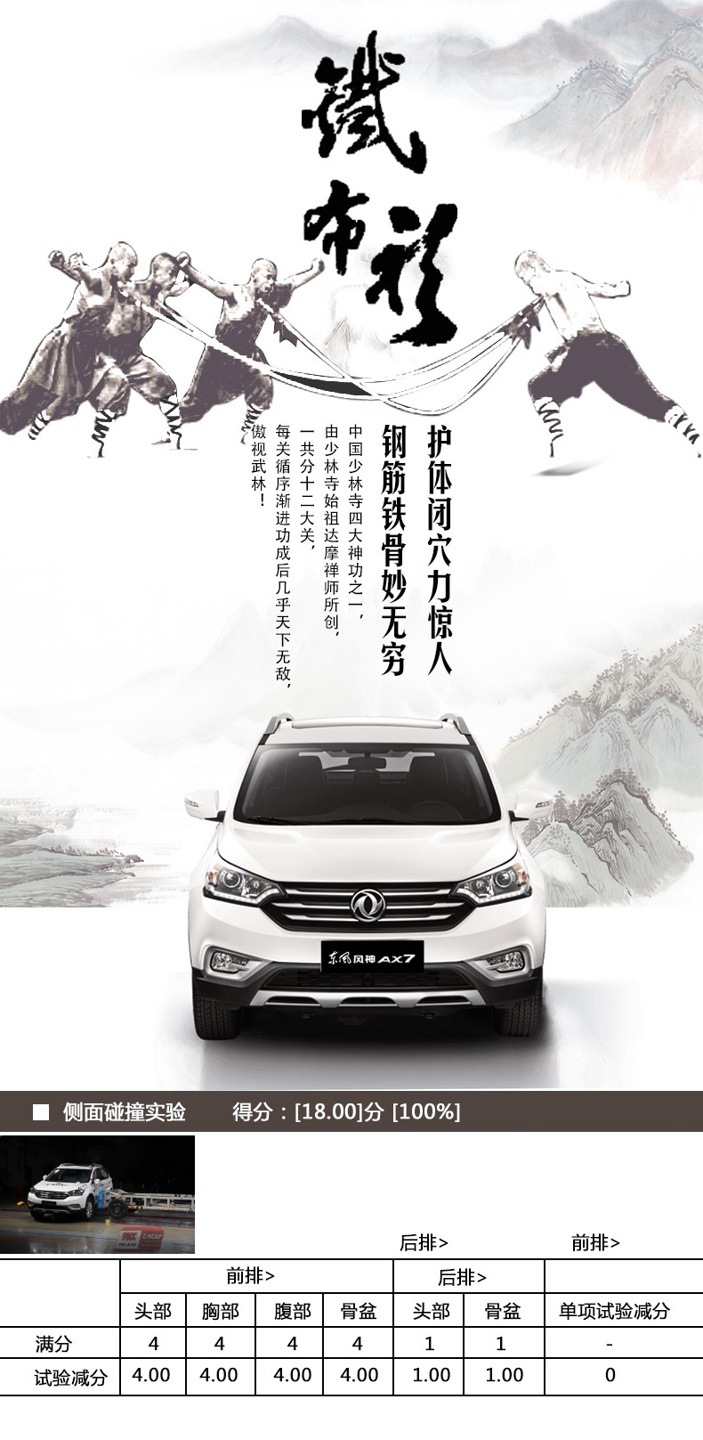 一副坚硬的外壳不但可以为车中的人遮风避雨,更可以带来无与伦比的安全感,且来看看东风风神AX7固若磐石的武林神功。