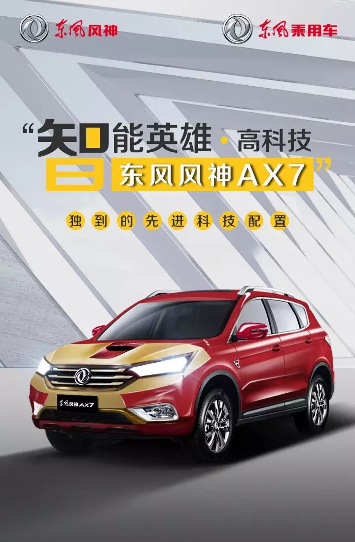 想要体验钢铁侠的高科技盔甲战衣?东风风神AX7智能互联车机系统+手机车机双屏无线互联让你一秒变身”科技达人”!ESC车身电子稳定系统、胎压监测系统、360度全景影像系统等,更是为您量身定制的专属科技盔甲!
