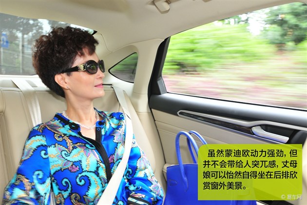 丈母娘坐在蒙迪欧后排十分之享受,不错的隔音降噪效果可以让她在车内欣赏动听的音乐,也不会影响她和家人、闺蜜聊天,在经过颠簸路面时,车辆也很稳定,不会让她感到不舒服。