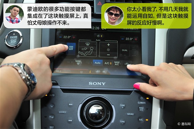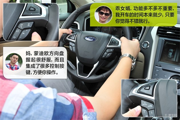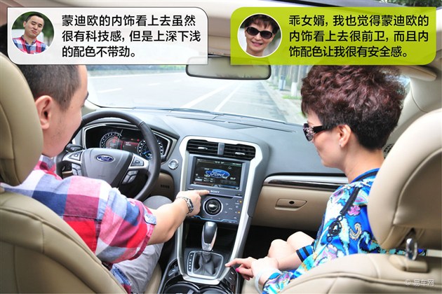 进入车内,丈母娘马上就开始和女婿讨论车内的配色、配置、功能按键等等,那么蒙迪欧到底哪些方面更吸引丈母娘的眼球呢?女儿的意见又是什么呢?