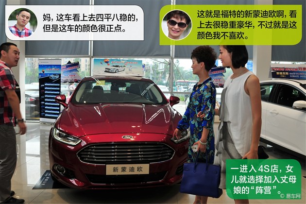 星期六一大早,丈母娘就率领小两口直奔长安福特4S店,之所以先去福特4S店是因为丈母娘在网站上看见了新蒙迪欧的广告,有了先入为主的印象。