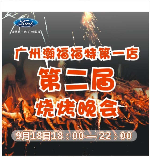 明天晚上7点在广州天河区黄埔大道东680号,广州瀚福福特4S店举办篝火烧烤晚会,现场将有丰富美味的烧烤、冷饮、点心、水果...任你享用,全程免费。
