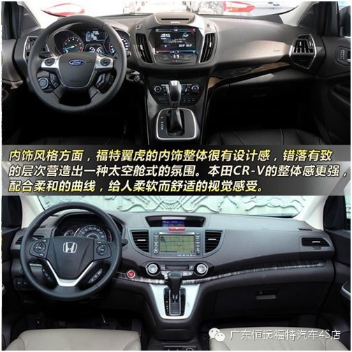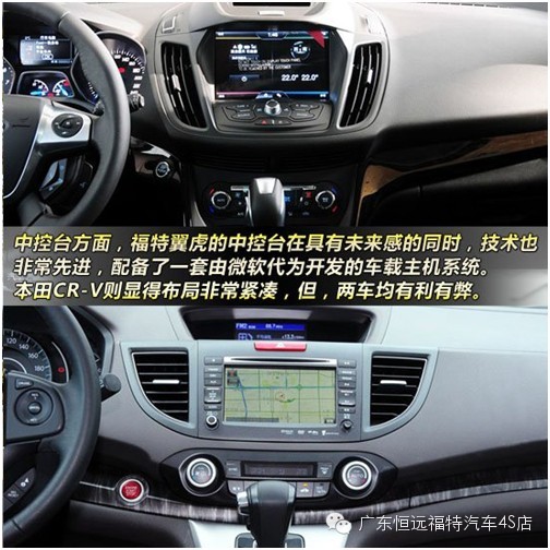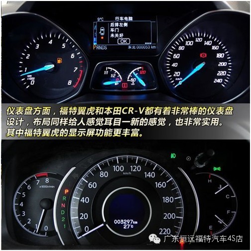 仪表盘方面,福特翼虎和本田CR-V都有着非常棒的仪表盘设计,布局同样给人感觉耳目一新,但却也非常实用。福特翼虎方面,左右双仪表和下方两块小表,被一个多边形的饰框包围,配合灯光配色营造出未来感,中央上方是一块大尺寸的显示屏,有丰富的信息显示和功能调节。