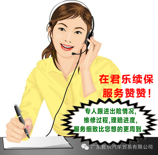 或直接关注广东君乐服务号微信,发送#车主姓名+车型+车牌号码+联系方式#至广东君乐微信后台,我们将会第一时间为您预约进店时间,为您做好续保相关准备工作。