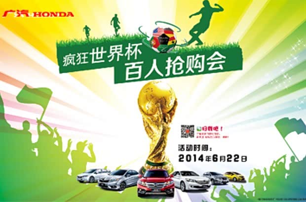 6月22日,世界级球员C罗代言的广本凌派将携广汽本田全车系车型——凌派、雅阁、2014款歌诗图、奥德赛、新飞度、锋范、理念S1,于广汽本田合骏店展厅 “疯狂世界杯 百人抢购会”活动将拉开帷幕!