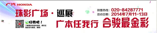 7月11日-13日广本合骏店将在海珠区珠影广场进行巡展活动,现场提供办理0利息金融信贷优惠,到场客户均可获得精美纪念品一份,购车更可享多重好礼!新飞度、凌派与您零距离接触,全新奥德赛正火热预订中,心动不如行动,带上家人或小伙伴们到现场看看吧!销售热线:020-84287771.