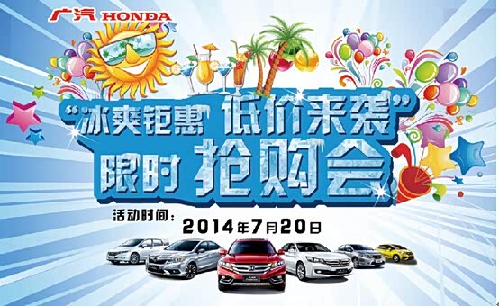 2014年7月20日,广汽本田合骏店(销售热销:020-84287771)店头举办钜惠超低价购车活动《冰爽钜惠低价来袭,限时抢购会》,全车系钜惠让利,订车可获赠超值丰厚大礼包。本年度全广州空前绝后的巨大优惠,史无前例的感恩日,就在这个炎炎夏日体验冰爽钜惠购车,让您立刻成为有车一族!机会难得!