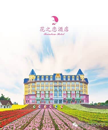 “花之恋酒店”,是知名景区“百万葵园”斥资十亿人民币,打造而成的世界级鲜花主题酒店,当属国内首创。酒店由11座风格迥异,融汇东方、欧陆等元素的建筑群构成。酒店四周被鲜花层层环抱。四季更迭,花开不眠,置身酒店,如沐花海。无论您是从耀眼夺目的向日葵林看过去,或是在紫香遍地的薰衣草丛中张望,又或是在如梦似幻的四季彩虹远眺,酒店建筑群总能成为您眼中难以移开的焦点,呈现一种360度的美丽。