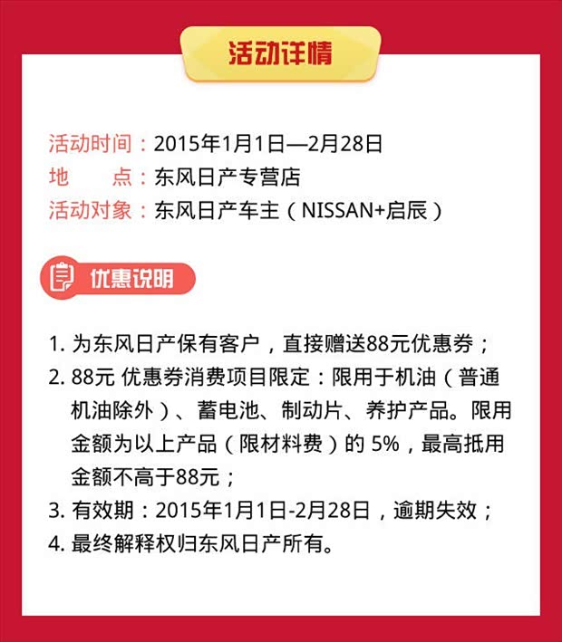 No.1:诚意足。所有绑定的NISSAN和启辰车主都有88元礼包哦,人人都有奖才是真的好。