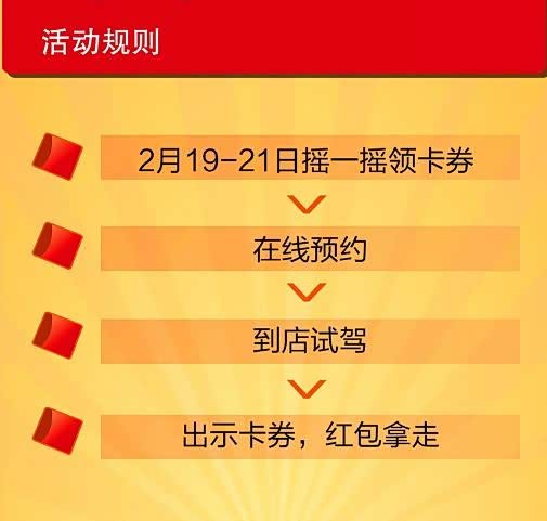 正月初一(2月19日)早上7点开始,掏出你的手机,打开微信,开始“摇一摇”,你就有机会摇到东风日产诚意奉上的88元新春试驾红包卡券!持卡券到店试驾并完成试驾点评,88元即刻到手!可直接提现哟!