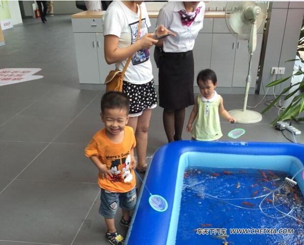 小朋友最开心莫过于玩水了,而且还有可爱的小金鱼,能不开心吗?