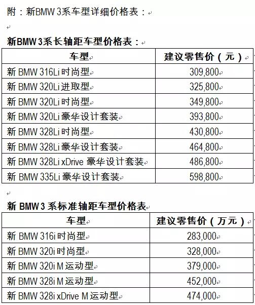 新BMW 3系对车型进行了全新优化,更为精简的产品序列为消费者提供最精准的车型选择,以最新加入的320Li进取型为例,不仅兼具BMW最黄金的动力组合和长轴距大空间的产品优势,而且丰富的配置和更亲民的售价必将成为同级市场中最具竞争力的车型。即日起,新BMW 3系在全国范围经销商内全面启动销售,感兴趣的消费者可以进店亲身品鉴和试驾。