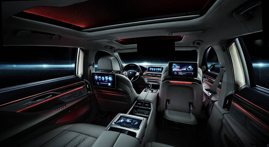 为营造无上的尊崇体验,宝马设计师还首创迎宾光毯,让每次上下车都成为充满“仪式感”的愉悦体验。星空全景天窗和后排氛围照明灯“光刃”妆点,6种高雅的氛围灯萦绕,营造出星辰灿烂美妙无比的车内空间。