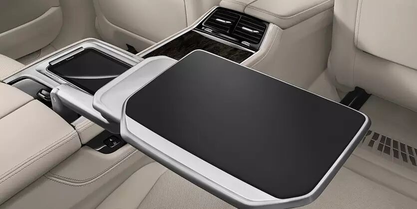 智能化豪华舒适的后排环境为时代领袖打造功能丰富的乘坐空间。在后排乘客一侧巧设折叠桌,可垂直和水平延伸;头等舱级后排独立座椅集成两个杯架,含一个储物箱和扶手下的隔间。